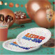 Serviettes de retraite colorées avec texte super et confettis. Décor de fête sur mesure.