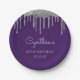 Assiettes En Carton Parties scintillant argent goutte pourpre 60e fête