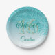 Assiettes En Carton Parties scintillant bleue turquoise, 16 Parties sc