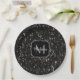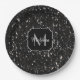 Personnalisez la plaque de papier brillante de fête d'anniversaire avec votre initiale et votre nom. De belles parties scintillant brillantes noires et blanches brillantes brillent. Photo de scintille pas de parties scintillant réelle !