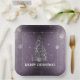 Ajoutez un scintillement à vos fêtes de Noël avec cette Parties scintillant d'arbre de Noël violet et des plaques de papier de flocons de neige, avec un design festif éblouissant. Ces assiettes robustes présentent un sapin de Noël radieux orné de parties scintillant et de flocons de neige, dressé contre un arrière - plan scintillant. De délicieuses fioritures élégantes et de la chute de neige rehaussent le charme hivernal, tandis que la typographie moderne "Joyeux Noël" répand la joie des fêtes. Parfaites pour servir des gâteaux, ces assiettes combinent style et fonctionnalité pour élever vos célébrations saisonnières avec une ambiance festive et scintillante.