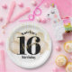 "Bonne Douce 16". Célébrez son anniversaire avec cette étonnante, simple, festive, moderne, plaque en papier personnalisée. Une typographie grasse, graphique, noire et un script manuscrit faux or superposent un "16" noir dramatique, de faux ballons d'or et des lampes à cordes brillantes d'or sur un arrière - plan blanc et propre. Personnalisez le texte personnalisé avec le nom de votre fille. Vous avez le choix entre 2 tailles : 7" ou 9", plus les options carré et bol. Cette plaque en papier design est garantie de donner le ton juste pour sa fête spéciale ! Invitations, serviettes et autres cadeaux d'anniversaire sont également disponibles dans cette collection spéciale et amusante. Idéal pour le fashionista en herbe qui aime la parties scintillant moderne et le glam! Il suffit de taper le nom de la fille d’anniversaire et vous pouvez facilement personnaliser ces plaques de papier Sweet 16 party. S'il vous plaît, envoyez-moi un message avec toute question ou demande.