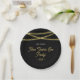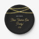 Cette plaque en papier New Year Eve Party présente un arrière - plan noir accentué de faux cordes de parties scintillant en or. Le texte de script personnalisé vous permet de personnaliser avec votre nom.