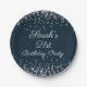 Assiettes En Carton Parties scintillant en argent bleu marine 21e fête