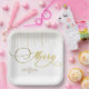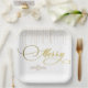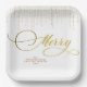 Accueillez vos invités, vos amis et votre famille avec ces assiettes en papier de Noël élégantes et modernes de la saison des Fêtes, avec un joli faux script manuscrit en or citant "Merry" sur un élégant arrière - plan blanc. Ajoutez facilement votre événement, ou tout autre texte, pour customiser le modèle.