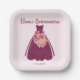 L'assiette de la fête en papier Quinceañera moderne est ornée d'une parties scintillant et d'une robe de chambre fleurie sur arrière - plan rose pâle.