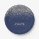 Parties scintillant Faux Bleu Argent et Marine Étincelle Élégante et Moderne Chic tendance Luxury Monogrammed Papier Plaques de Partie. Ce monogramme - ajoutez votre propre nom Les plaques customisées peuvent être mises à jour avec votre nom et utilisées pour une fête d'anniversaire, Mariage, Activité corporative, Bachelorette, Fête des mariées ou Baby shower.