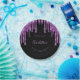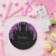 Pour une fête d'anniversaire branchée et glamour de 50ème (ou n'importe quel âge). Un arrière - plan noir classique décoré avec des gouttes de parties scintillant couleur violet foncé, la peinture goutte à goutte. Avec le texte : 50ème anniversaire. Personnalisez et ajoutez un nom et une date. Texte de couleur violette. Le nom est écrit avec un script de style moderne écrit à la main. Des serviettes en papier assorties sont disponibles dans notre magasin.