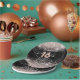 Plat de fête moderne et chic avec parties scintillant rose étincelante et étoiles brillantes sur un arrière - plan noir élégant. Avec sa typographie à bulles époustouflante, ce design glamour vous assure d’être la vedette de la célébration. Parfait pour ajouter une touche élégante et amusante à votre occasion spéciale !