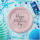 Cette assiette de fête sur mesure présente un décor de coeur romantique de Saint-Valentin. L'arrière - plan est un motif en feuille rose bébé avec un cadre cardiaque en parties scintillant rose qui borde le texte. Un message d'accueil "Heureuse Sainte-Valentin" est imprimé au centre dans une police de caractères élégante. De jolis confettis de parties scintillant rose sont parsemés sur les parties supérieure et inférieure.