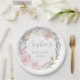 Les assiettes de fête de la mère florale d'une jolie aquarelle rose portent le nom de la future mère dans un élégant script de calligraphie gris argenté, et comprennent une belle bordure de fleurs pastel et de couronnes vertes. Cette belle plaque en papier fait partie de la collection de la mère chrétienne et de la fête de bénédiction de bébé, et est également modifiable pour une variété d'occasions et de célébrations.