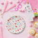 Brighten up any celebration with this playful and charming paper plate design. Featuring a delightful mix of watercolor hearts in pink, red, lavender, and mint, this pattern is accented with golden glitter circles, hollow gold hearts, and delicate leaf sprigs. The clean white background makes the colors pop, making it a versatile choice for Valentine's Day, children's birthday parties, tea parties, or generic "thank you" luncheons.