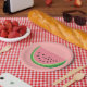 Voici un croquis d'une pastèque. Des serviettes en papier dans le même design sont également disponibles et différents types de fruits à mélanger et à assortir. Cette image est disponible sur une variété d'autres produits, il suffit de cliquer sur le lien sous la photo près de "About this Design".