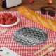 Assiettes En Carton Patchwork rayé noir et blanc avec dentelle