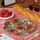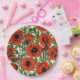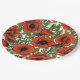 Assiettes En Carton Pavot rouge et brindilles, feuilles verts sur blan