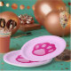 Ensemble de huit plaques en papier de 9" avec l'image d'un paw chiot rose vif avec des coussinets roses doux sur rose. Voir coupe expresso, lanceur, théière et dessous de verre en papier assortis. Voir l'ensemble de la collection Kids' Corner Plate dans le FOOD/BEV | Section Plats.