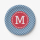 Plaques en papier monogrammé avec un élégant motif bleu en vichy style rustique. Ils fabriquent de grandes assiettes en papier pour un pique-nique, un barbecue et une soirée sur mesure. Personnalisez-le en remplaçant le texte de l'espace réservé. Pour plus d'options comme changer la police et sa taille, cliquez sur le bouton "Customiser". *Veuillez noter que le filigrane Zazzle qui apparaît dans l'aperçu du zoom n'apparaîtra pas sur le produit imprimé final. © Bois de rose et agrumes