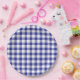 Modifiez la couleur arrière - plan bleu profond derrière le motif sans couture en vichy tuiles. Ajoutez du texte pour personnaliser. Créez vos assiettes en papier. La motif traditionnelle en vichy ajoute une touche de charme et de nostalgie à tout événement spécial. Ces assiettes seraient idéales pour un pique-nique familial, des barbecues ou tout rassemblement extérieur où une atmosphère décontractée et joyeuse est recherchée. Ils peuvent également être intégrés à un mariage vintage ou d'inspiration nationale.