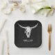 Invitation vos invités à votre journée spéciale avec ces plaques de papier carré en papier noir et blanc de la ferme de l'ouest rodéo crâne taureau de l'ouest. Belle texture rustique arrière - plan pour customiser vos informations en utilisant la typographie blanche en détresse. Copyright de l'image Marg Seregelyi Photography.