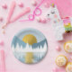 Un beau design mettant en valeur une forêt couverte de neige, un paysage montagneux et un coucher ou lever de soleil doré se reflétant dans l'eau. Les tons de couleur comprennent des tons neutres tels que le bleu, le blanc et l'or. Un design rustique idéal pour la décoration de la maison en hiver et la saison des fêtes.