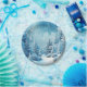 Assiettes en papier jolies avec une image d'une belle forêt de pins enneigés. Une journée d'hiver agréable avec un ciel bleu et de la neige qui tombe.