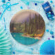 Plaques en papier avec une photo paysage pittoresque du nord comme toile de fond. Un lac aux couleurs turquoise avec une forêt de pins en arrière - plan et un ciel brumeux lui donnant une qualité mystique magique.