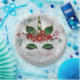 Plaques de papier | Peace Hope and Love in Script calligraphy. Un arrière - plan de livre brillant en argent découvre ce Visage de licorne vert et or magnifiquement décoré. Elle a de magnifiques yeux de parties scintillant verte avec de longues cils et un or brillant et des cornes et oreilles rayées vertes. - elle porte une tiare florale de poinsettias rouges, lys saints et rouges - ornée de rayures rouges et argentées et vertes et argentées qui pendent à différents niveaux des chaînes ornées d'argent. Personnaliser texte en bas ou vous pouvez le supprimer - Il s'agit d'un design de vacances non confessionnel adapté à la famille ou bureau à utiliser. Toutes les oeuvres d'art originales © par WhimsicalArtwork™ Cette collection fait partie d'une collection de vacances coordonnée.