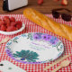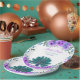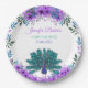 Assiettes En Carton Peacock vert et bleu | Fleurs d'aquarelle violette
