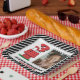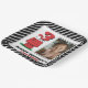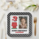 Set a super stylish party table with this customized Peanuts birthday plate! This square plate features a bold black and white diagonal striped border for a fun, striking look. The center is a personalized delight, showcasing a cheerful photo of the birthday child right next to a large "3" graphic. The iconic Snoopy is napping happily on his red doghouse, situated beneath the age number. Below the images, the plate displays the clear, festive message. This customized piece is perfect for serving cake and makes a cute, memorable photo keepsake from the celebration!