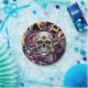 Día de Muertos ou plaques de papier fête d'Halloween en noir, violet, or avec un crâne à sucre.