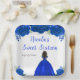 Cette plaque de sweet sixteen présente des fleurs florales bleu roi en parties scintillant imitation et une belle princesse à la peau foncée et une robe élégante. C'est parfait pour une fête d'anniversaire en sweet sixteen.