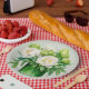 Assiettes En Carton Peine verte et blanche Mariage élégant