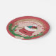 Des assiettes en papier de Noël adorables avec un curieux ourson polaire vêtu de bois qui regarde dans le sac de Père Noël. Personnalisez-les avec votre texte.