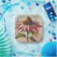 Un vif affichage de traits de brosse capture une fleur de cône fleurie avec des pétales roses et des feuilles verts, dressé contre un arrière - plan texturé