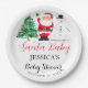 Père Noël Bébé aquarelle, hiver, baby shower, neutre pour le sexe, plaque de papier de partie. Elégante, calligraphie simple, plaque papier Baby shower partie. Personnalisez-le avec vos détails.