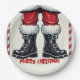 Assiettes En Carton Père Noël cool en bottes noires à la fête de Noël