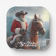Ce design de Noël amusant montre Saint Nicolas dans un casquette de cowboy rouge à cheval sur un magnifique cheval de palomino.