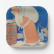 Santa Claus vintage à Chimney Illustration Plaques en papier de vacances.
