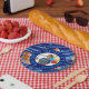 Perfect for space-themed birthdays and astronaut parties, these plates add a bold, cosmic touch to your dessert table or dining setup. The bright galaxy design combined with a personalized photo makes every place setting feel special and party-ready.