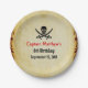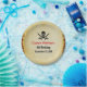 Ahoy, les Coeurs ! Il est temps d'obtenir la forme d'un bateau pour une soirée pirate ! Design amusant sur un vieux parchemin avec un crâne avec des épées croisées au-dessus. Vous pouvez customiser le nom, l'âge et la date. Avast - ne retardez pas.