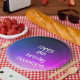 Plaque en papier Happy Birthday à l'ombre personnalisée, que vous pouvez facilement personnaliser avec un nom. Cette plaque d'anniversaire moderne en dégradé violet rendrait une partie magnifique du décor à sa célébration d'anniversaire.