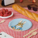 Assiettes En Carton Peter le lapin souffle une gomme à bulle bleue