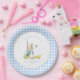 Assiettes En Carton Peter Rabbit Bleu En vichy frontière Brunch de Pâq