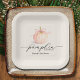 Un mignon petit citrouille attaché avec un élégant ruban rose met en évidence ces petites filles baby shower douces plaques de papier carré en ivoire avec "Un petit citrouille est en route" et le nom de la mère. (Disponible aussi en bleu et en ivoire.) CORRESPONDANCE d'objets dans notre collection.
