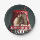 Plaques en papier d'anniversaire avec un gâteau d'anniversaire Little Red Riding Hood avec "Happy Birthday", police audacieuse casquette. Customisez-le en ajoutant votre ou vos nom(s).