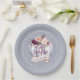 Un petit citrouille automne baby shower plaques de papier de fête en violet, vert et pêche. Avec une belle aquarelle fleurie, feuillage et design citrouille. Design automne/automne idéal. Convient pour un baby shower neutre pour les femmes.