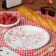 Plaques en papier Fête des mariées pour bébé rouge rose petit amoureux