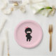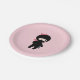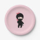 La mignonne fille de dessin animé ninja est habillée tout en noir mais pour un arc rose sur son masque de tête. Le katana d’épée japonaise traditionnel peut être vu attaché sur son épaule, sa poignée est également rose.
