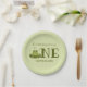 Notre petite grenouille tourne une première plaque de papier d'anniversaire pour bébé. Ces plaques sont vertes avec le mot "Un" en gros caractères avec une illustration de grenouille comme première lettre du mot. Simplement, customisez ces assiettes, ajoutez-les à votre panier, et joyeux anniversaire à votre merveilleux bébé! Petite grenouille transformant un animal mignon 1er Anniversaire Papier Plate Jour férié Conception | ©Melissa Patton - Artiste/Illustrateur