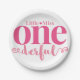 Plaques de fête de papier qui correspondent à notre thème de premier anniversaire de Miss Little Onderful rose!